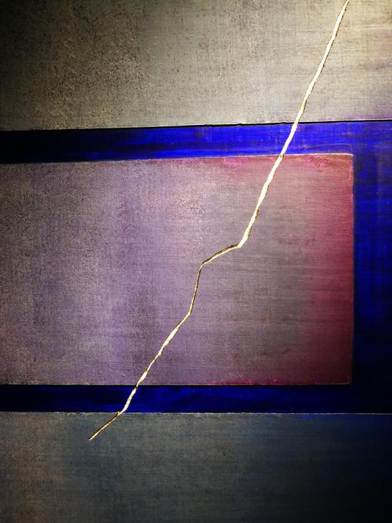 姚运本次带来14件作品参展,每一幅作品都有一个明显的图像标志“裂缝”。观展嘉宾们认为,姚运围绕裂和缝的创作,对今天全球范围内面对“裂缝”的人们,显得更有意义。