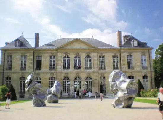 庭院中央是一座不太典型的洛可可式的建筑,这就是罗丹美术馆的主体建筑,也是罗丹最后的住所,他在这里创作、生活。进入馆内,可见第一层被分割成了好几个展厅。这些展厅分别陈列着《青铜时代》《上帝之手》《吻》等代表作。藏品的材质种类丰富,有大理石、青铜、瓷、石膏和陶土等。
