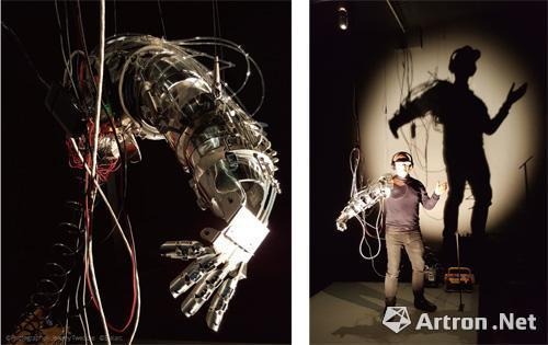 中央美术学院此番这样的大动作绝非一蹴而就,我们不妨将线索拉到2016年的那场叫做“技术伦理”的媒体艺术双年展,那次由院长范迪安带头玩儿嗨的人机共舞“机械趴”。此作品为世界上不同的三地之间依靠网络进行的每天6小时、长达5天的表演作品。身穿显示器的人,通过身在伦敦的双眼观看,凭借位于纽约的双耳倾听。任何访问画廊或在线进入展览空间的人,都能连上这个八自由度的外骨骼机器,用程序指挥艺术家的手臂活动。艺术家通过视觉与听觉的错位,失去身体一部分的自主控制,与长时间的被监控状态,来探索身体被分解且分处各地的生理与美学体验。