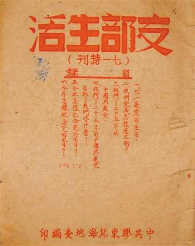 通过查阅资料可知,《支部生活》创刊于1941年7月,由山东第三区党委二地委宣传部主办,出刊到30期时,改由中共胶东北海地委编印,后于1947年5月停刊。刊物的后期编辑者北海地委隶属于当时的中共山东胶东区委,存续时间为1945年8月至1950年5月。