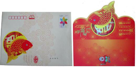 (二)工艺复杂、防伪性强。“鱼跃龙门”贺年封由贺卡专用信封和内件贺卡构成,用纸讲究。封的印制采用防伪团花、专色荧光油墨等防伪技术。除此外,封上的模切线、条形码、兑奖号除本身的作用外还有着天然的防伪功能;内件贺卡则使用了三种精美印制工艺,同样让人难以伪造。