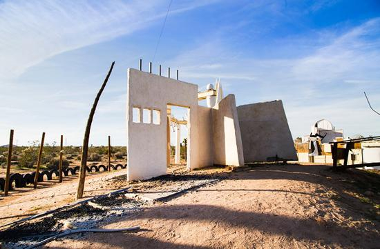 在沙漠生活的一大乐趣,就是像诺亚那样搜集废品,把破瓶子、破罐头、破头骨、破钢琴、破汽车变废为宝,一分钱不花,就多了一个西部牛仔主题的小酒吧、一个仙人掌小花园、一个没有什么用却充满诗意的小雕塑。在这三位艺术家之间,也存在着截然不同的创作空间观念。对伦敦夫妇来说,沙漠成全了他们对理想生活状态的期冀——自由自在、远离人群、材料有限却能激发想象力、生活艰苦但是让人对环境充满敬畏(他们所有用水都回收再利用,进入下水管道的液体都不含对环境有害的化学物质)。对洛杉矶朋友来说,沙漠空间大大减少了他注意力不集中的时间,因为举目四望,这里什么都没有,没有电视、没有娱乐、没有过往的人流和各色广告,他只能把所有的时间用于“对付自己”,这是他始终在逃离而最终发现必须直面的问题。