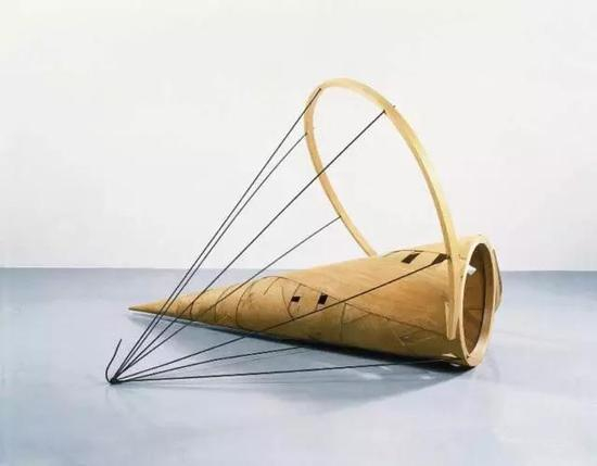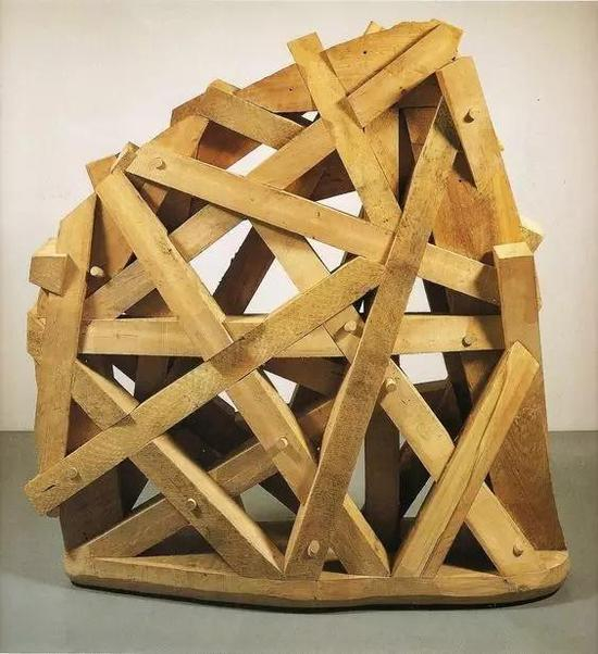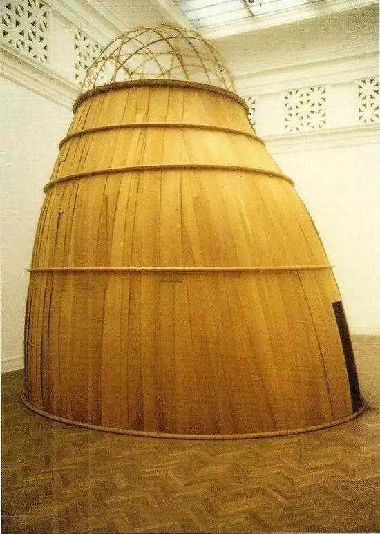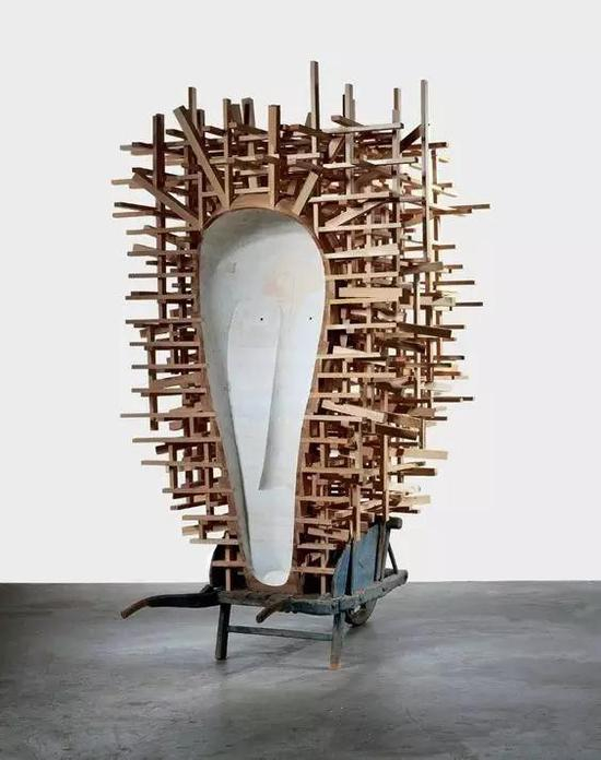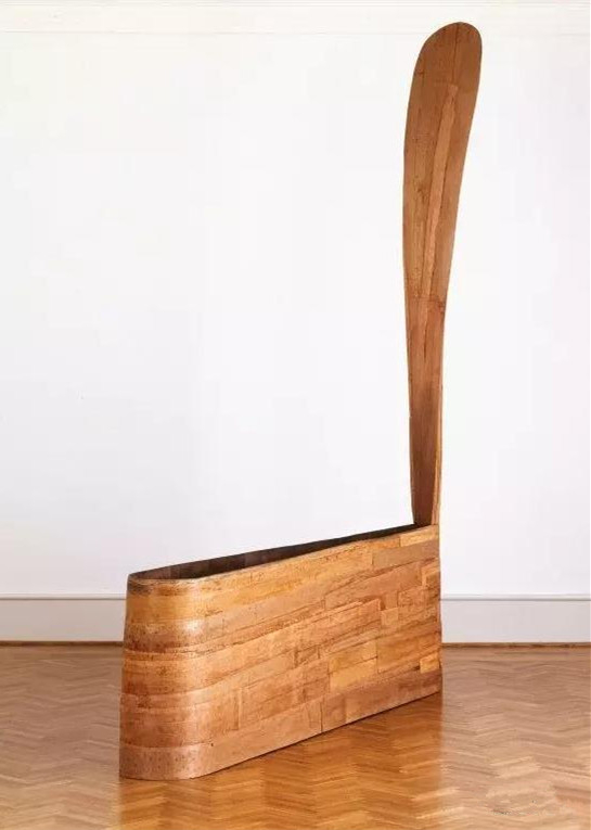 马丁·普耶尔(Martin Puryear,生于1941年)是一位杰出的雕塑家,善于创作物品,而非装置。普耶尔曾参加“和平工作队”在西非国家塞拉利昂的服务活动,还曾在瑞典学习过版画和木工技艺,而且游历过日本。他后来于1973年定居美国,在那里成为了同辈艺术家中的一流雕塑家。普耶尔首先引起人们注意的一件作品是1985年的钢木雕塑《魔咒》(The pell)。我们震惊于作品的曲线之美、圆锥的优雅尖细,以及矩形开口的变化多样;平板木条拥有细细的条纹,其充实的质感让“木条”看起来像是一个篮子。对编制篮子的影射暗示手工艺和匠人,进而暗示了人的存在。我们可以感受到这件物品是由手工精心制造,我们还能感到普耶尔的艺术背景不仅仅来自非洲,虽然他可能曾在那里见到过手工精湛的器皿和仪式用木器;他的艺术灵感还来源于瑞典,因为他曾在那里学习过木工;此外还有日本,那里具有制作功能性和装饰性木器的悠久传统。然而,仅仅由于普耶尔是一名美国黑人,就认定其艺术参照了非洲艺术的说法本身就是个错误。他的雕塑与民族身份和政治无关,只是反映出作者在多种文化中的广泛体验。通过以木材作为艺术媒介的方式,他得以将这些体验熟练、完美地表达出来。