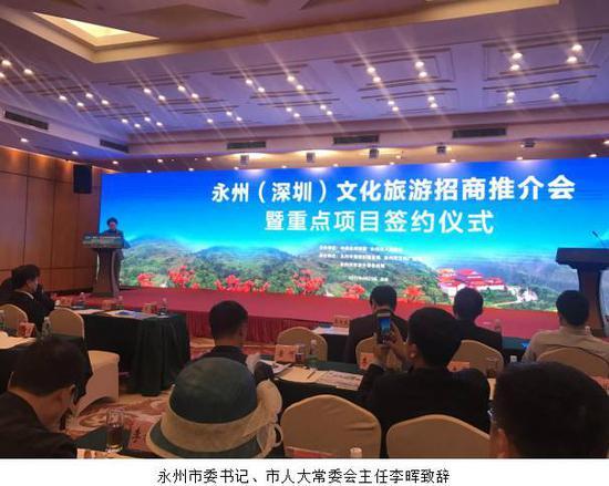 推介会由永州市委副书记、市长易佳良主持,市委书记、市人大常委会主任李晖致欢迎辞,副市长李旦梅作重点项目推介。推介会上,“水云潇湘·一江十景”、阳明山旅游、潇湘文化创意产业园、涔天河水库旅游度假区、湘江源旅游等一批旅游文化综合开发项目备受关注。