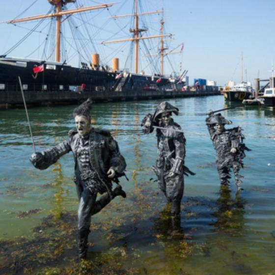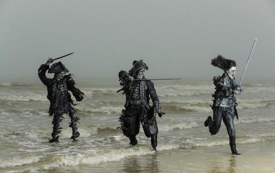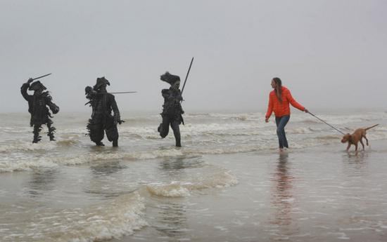 “加勒比海盗”雕塑现身英国海滩“魔性”造型抢眼