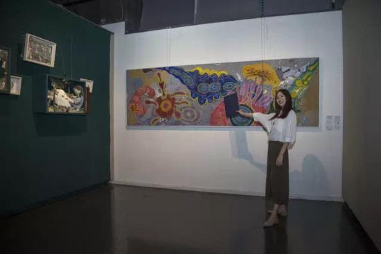 “在花园”2017届毕业生优秀作品展现场及院长邓国源和获奖学生的合影