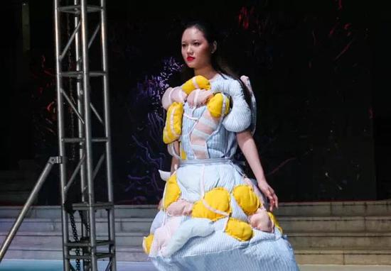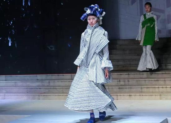 开幕式颁奖环节结束后,随着灯光、音效和LED三维动态影像的绚丽结合, 产品设计学院服装与服饰设计系举办的“2017优秀毕业生服装作品动态展示发布会”拉开帷幕。产品设计学院服装与服饰设计系13名毕业生的49套优秀服装作品参加了展示。本次毕业设计主题为《至极》,毕业生们充分发挥设计才华、深入挖掘专业智慧,将服装的创意与时尚发挥到极致,“创意时装设计”、“成衣时装设计”和“新中式时装设计”三个设计方向。创意时装设计更加强调服装设计作品的原创性、观念性和主题性。成衣时装设计更加强调设计作品的时尚审美性和流行性。而“新中式时装成衣设计”是与天津老美华服饰鞋业有限公司的校企结合项目,企业为参与此次校企合作项目的毕业生给予了全方位的支持。