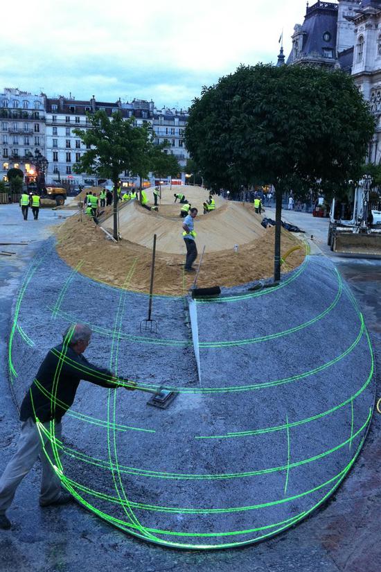 2012年夏天弗朗索瓦为在巴黎市政厅前面展示的大地艺术项目选定了他所需的区域。由于该区域的阻力和机械性能,可以迅速地在斜坡上铺上90°的草坪,这片草坪也完全占据了巴黎市政府广场心脏地带,人们可以悠闲的漫步在这个极致的绿色区域。