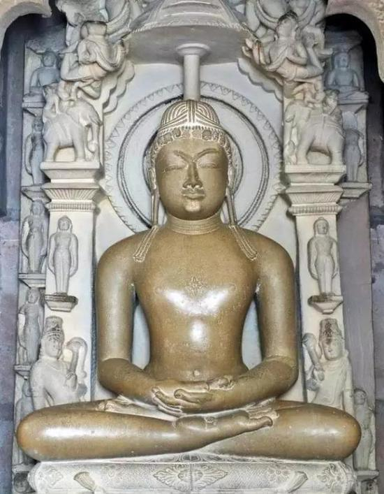 故宫展出的这座雕塑是耆那教的22祖。其实目前有历史记载的是二十三祖巴湿伐那陀和二十四祖筏驮摩那。后者生于古印度吠舍离一个王族家庭,属刹帝利种姓,是释迦牟尼同时代人,佛教称他为尼乾陀·若提子(意译离系亲子)。耆那教盛行祖师崇拜,造像一般是各位祖师。
