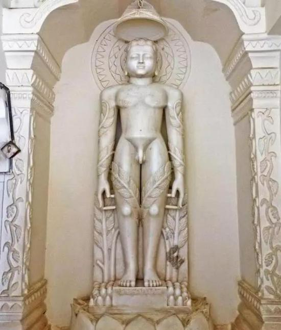 大雄主张裸体苦行,认为衣服也是世俗羁绊的标志,应该抛弃。大雄死后耆那教分裂成两派:一派叫天衣派(裸体派),以天空为衣;一派叫白衣派,只穿一件白袍。因此,寺中耆那教祖师和圣者造像多半是裸体(通常只在腰间裹一块布),以裸体显示苦行的坚毅和灵魂的纯净。
