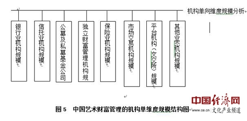 中国艺术财富管理的机构单向维度规模结构图,见下图5所示。