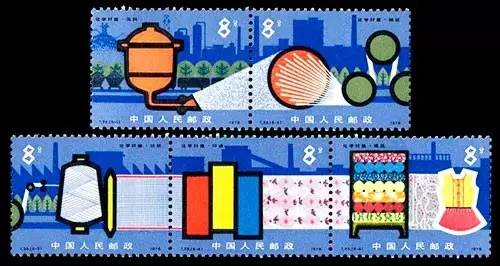 1978年6月15日中国人民邮政发行,这套邮票从几个侧面反映了中国自1949年以来30年间化纤工业的成就。