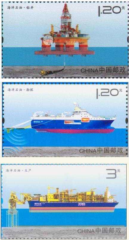 中国邮政于 2013年1月18日发行2013-2《海洋石油》特种邮票一套3枚,