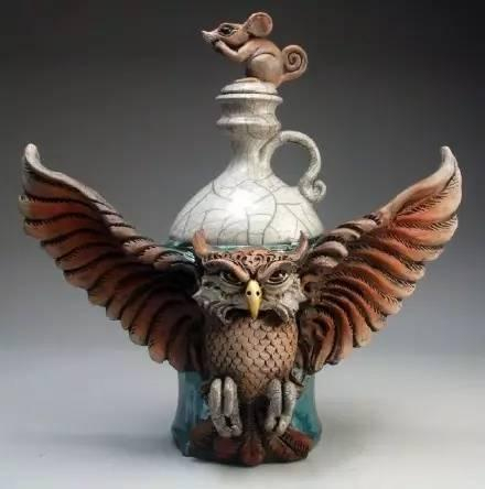 艺术家 Mitchell Grafton 陶瓷雕塑作品,通过陶瓷表现自己脑海中的幻想,不高兴的茶壶、武装大象、重武器鲨鱼,各种离奇的组合出现却又不显违和,完美结合而又生动形象。
