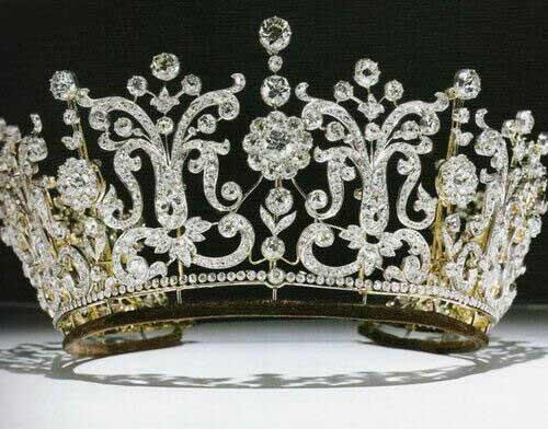这顶美艳绝伦的皇冠属于瑞典公主(katharinahencket von donnersmarch),她曾是Ostfriesland这片土地的摄政者。这顶皇冠由被业界誉为“静香美钻”的绿色宝石镶嵌而成,一片浓碧,靓丽异常,总重大约101.27卡拉,曾经在苏富比著名珠宝拍卖会上出售。