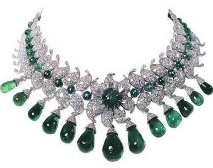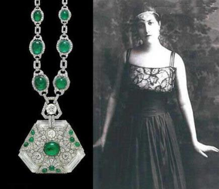 这条美丽的项链的女主人是西班牙的一位著名舞蹈家Anita Delgado,后来的卡普塔拉公主。这条华丽的项链由晶莹璀璨的钻石、绿宝石和水晶石组成,作为著名的珍宝拍卖品在伦敦Christie拍卖行留下过身影,还曾经是印度王公最爱的大象装饰,目前估价为大约10万英镑。