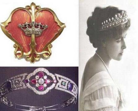 这枚华丽的胸针以及皇冠,属于罗马尼亚女王玛丽女王,她是俄国Alfred王子(爱丁堡公爵)和女大公爵MariaalExandrovna的大女儿。这枚美丽的胸针呈贝壳状,上面压制着罗马尼亚公主的皇冠造型和字母组合,由俄罗斯著名珠宝设计商C。 Faberge制造。另一件美妙绝伦的属于罗马尼亚皇室家族的钻石皇冠则由黄金和各种宝石组成,华彩夺目,价值不菲。