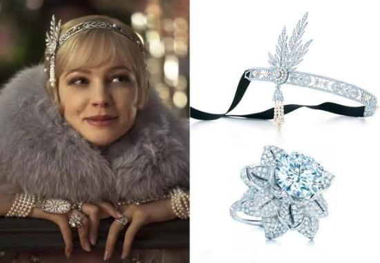 《了不起的盖茨比》这部电影是根据1925年F斯考特-菲茨杰拉德 (F。 Scott Fitzgerald) 的同名经典小说改编而成的。故事背景都是以奢华的有钱上流生活为主,所以电影中的配合的珠宝首饰更是不能马虎。所以剧组特别邀请Tiffany蒂芙尼为这部电影量身订造设计了一系列创作了多款珠宝及配饰臻品,极大程度地还原了当时奢华的情调。