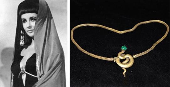 在电影《埃及艳后》一片中,一场色彩交织的盛宴,古埃及与古罗马,奢华得无以复加。腰肢丰腴的泰勒总是描着长长的黑色眼线,佩戴着永不重复的奢华珠宝,风情万种、环佩丁当。
