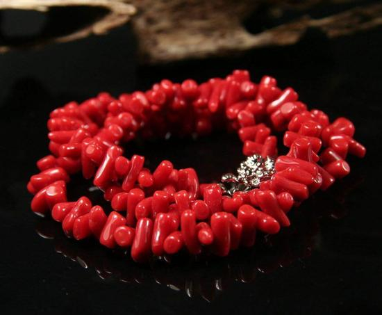 红珊瑚(Red Coral):属有机宝石,色泽喜人,质地莹润,生长于远离人类的100至2000米的深海中。与珍珠、琥珀并列为三大有机宝石,在东方佛典中亦被列为七宝之一,自古即被视为富贵祥瑞之物。