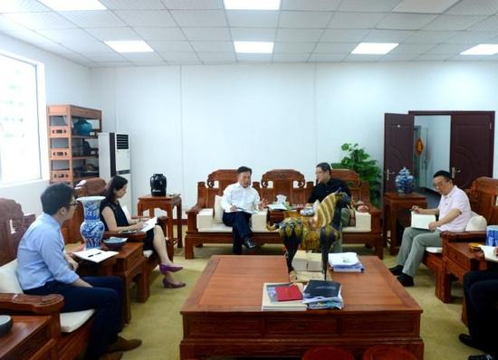 新浪文交频道讯:(凡新浪网版权所有文字与图片,未经授权,请勿转载。) 10月11日,前海股权交易中心董事长胡继之一行到访深圳文化产权交易所,与深圳广电集团副总编辑、深圳文交所董事长于德江及管理团队一同就区域股权交易中心筹备及相关合作可能性展开探讨。