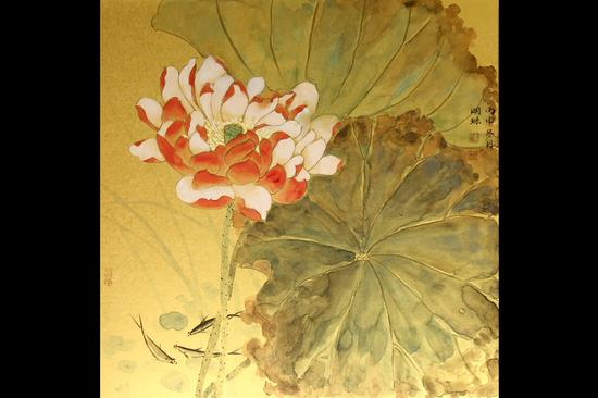 今晚的第一件拍品是黄明珠老师的花鸟卡纸。