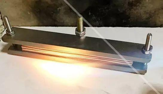 压制好所有的金属进行熔接。ps:木纹金首饰所有的金属与金属之间的连接不是焊接,运用的方法是熔接。在金属的温度即将到达熔点时,有一些微微融化的状态,及时撤火,金属与金属就可以连接在一起,成为一整块金属。