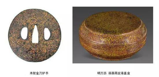 “木纹金”工艺当时主要使用在武士的刀柄护手等刀具的装饰上。