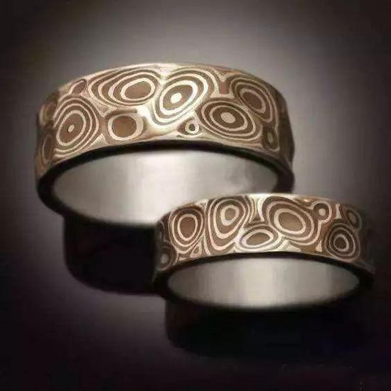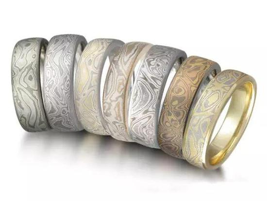把不同颜色的金属比如银、铜、k金等金属进行叠加。