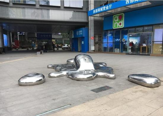 重庆街头现奇特雕塑“融化的鼠标”