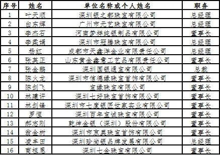 1、叶天顺 深圳银之都珠宝有限公司 总经理