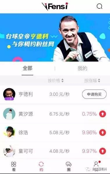 如果你是亨德利的铁杆球迷,一直梦想和亨德利打一场友谊赛,那么你的机会来了。首先你需要下载粉丝网APP,注册并完成认证,然后在“约”的菜单栏购买3000秒的时间,用来换取与亨德利打球的资格。如果,你购买以后觉得时间冲突或者别的因素无法赴约,你也可以一直持有,或者高价转售出去。另外,你也可以单纯的购买一些亨德利的“原始股”,等这支“股”突飞猛进时,再转售卖给他人,从中大赚一笔。