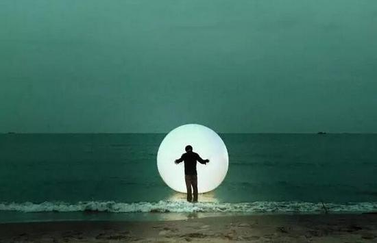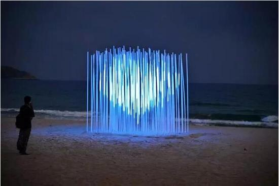 我在一些作品中也会很自然地运用科技元素,比如去年在海边沙滩上展出的《倾听海洋的心跳》。