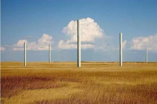 “以沙漠作为画布,用蓝颜料浇出一条蓝色河流,纪念那些早已消失的生命线脉。”