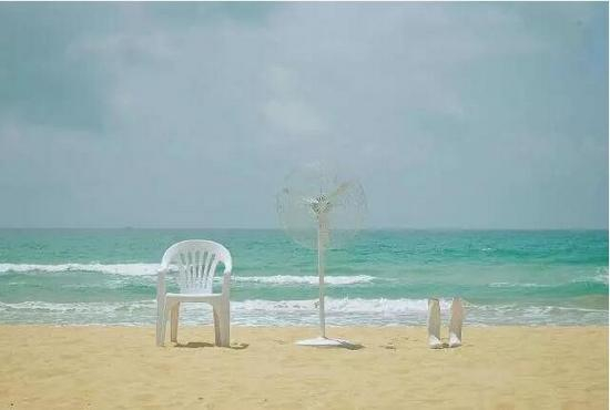 “海洋污染、近海生态破坏、农田撂荒、人才外流,我对家乡海南的现状与前景感到担忧。椅子,风扇,雨鞋,这些海南人非常熟悉的物件以一种优雅的形态,与海天协调地融为一体,预示着忘却与期盼。”