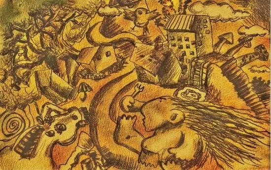“去年,当我画出毛毛身上稀疏杂乱的毛发,我觉得我获得了一种释放。毛毛是我重新认识自己,肯定自己,去除传统教育观念对想象力和自我认知束缚的象征。写到这里,我想起八年前的一副绘画,其实我在绘画上寻找自我解放的思考从那时候就开始了。”