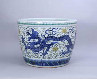 哈维·哈登遗赠大英博物馆 明万历 青花斗彩龙纹大缸
