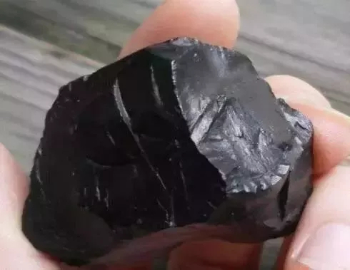 具有明亮的沥青、金属光泽,黑色,致密,韧性大。比一般煤轻。存在于沥青而岩中呈孤立块状体或夹于煤层之间。