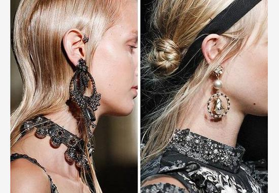 造型别致的大耳环势头格外强劲,J.W.Anderson 艺术流的不对称设计,Giorgio Armani 纤细的精致设计,Proenza Schouler 装饰感的工业风格设计……