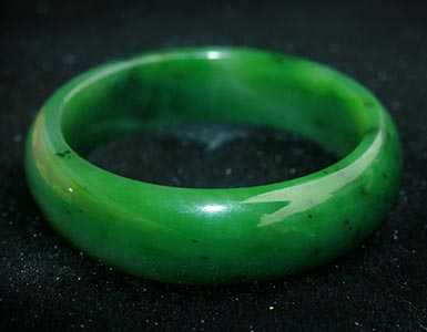加拿大碧玉可以说是该地的一大国宝,其硬度与和田玉一般,且其产量大。同时这种碧玉的主要特点是颜色鲜艳明快,质地细腻均匀,而且块度较大,其颜色色调要比俄罗斯碧玉更多一些黄色调,黑点较少,有水感。