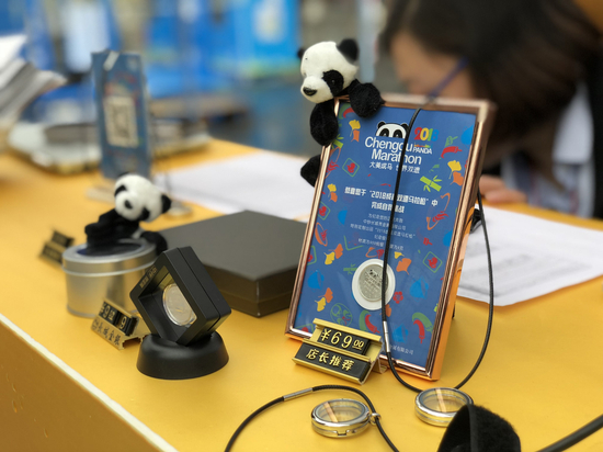 据官方介绍,本次双遗马拉松进行了多项升级。其中,以“熊猫集市”为概念的熊猫系列文创产品,成为成都双遗马拉松十大升级点之一,富有熊猫元素的马拉松纪念银章、熊猫纯银书签、杯垫、冰箱贴、笔记本等文创产品琳琅满目。