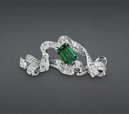 珠宝和缎带的结合最早可以追溯到18世纪,当时欧洲贵族女性中流行的缎带花结胸针,就是用贵金属镶宝石打造成缎带蝴蝶结的形状。