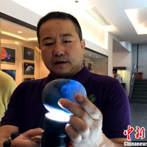 陨石科普馆馆长何建中介绍,陨石是指从行星空间穿过地球大气层烧灼后达到地球表面的流星残留体,是来自地球之外的尊贵“客人”,不但具有科研价值、收藏价值,也有相当的审美价值。他向记者展示馆藏的一块玻璃陨石,当用灯光照射时,原来灰蒙蒙的陨石表面发出蓝、紫等色彩,如宝石般璀璨。