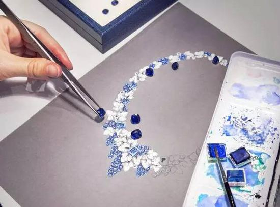 在珠宝首饰产品中,无论是其金属材料还是宝石材料,或其他材质,其色彩的搭配非常重要。不同风格、民族、地域、文化均有差异,要正确认识这些差异,才能准确搭配色彩,并最终完成设计。无论哪种材质,珠宝首饰的色彩在明度和纯度上均较高,需要绘制出珠宝首饰的晶莹剔透和干净明亮。