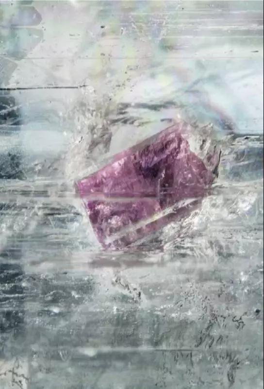 就好像沉水前的翻滚,图中是锂辉石中的粉红色电气石。