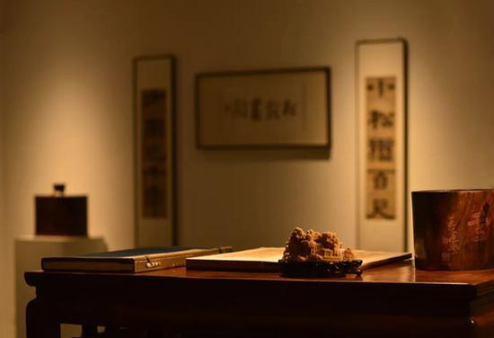 中国的历史传统中,有无穷无尽的文化典故,又被文人衍生到难以企及的精神高度。各类演绎故事被转化为能工巧匠的创作题材,运用于生活的方方面面。而文房之属,汇集了文人思想精髓与审美情趣,其中陈设自然处处可讲,物物可观。自古,文人便有“卧游”山水画的情怀,元代倪云林便有“一畦杞菊为供具,满壁江山作卧游”的畅怀诗句。而一些案头清玩同样可以令人感受“虽在城市,有山林之致”的妙趣,感悟澄怀观道的精神充盈,也可以仅是闲心物外,卧而游之。
