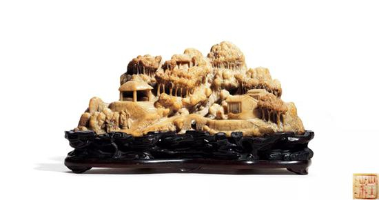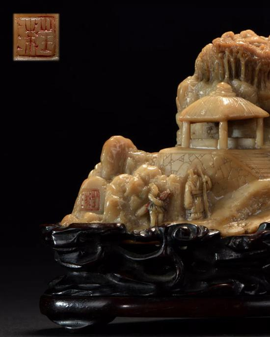 作者汪洙是清代顶级的雕刻名家,张俊勋《寿山石考》一书(成于1934年)中有关汪洙记载如下:“近有人于京师得寿山石刻,……下刻‘汪洙’二字,皴法高古,石质温润,厥工甚细”。北京保利曾于2011年春以333.5万人民币成交一件清乾隆寿山石山水人物山子(北京保利,2011年06月05日,编号7205),即为汪洙所制,与拍品风格近似,可资比较。另北京故宫博物院藏清乾隆青玉携琴访友图山子(《故宫博物院藏文物珍品大系——玉器(下)》,页58,图45)虽与拍品用料相异,但题材一致,同属乾隆时期玉雕山子中的妙品之作,可资参照。