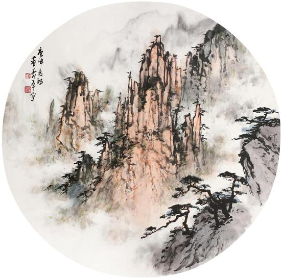 黄山自古为画家范本,新安画派那干裂秋风、润含春雨的笔情墨趣已名垂画史,董公继起,融汇古今,直抒胸臆,以跌宕排埼的笔墨,状黄山层峦叠嶂,意气风发,如自揭须眉,那高洁挺拔的青松,静观着世事沧桑;那飘渺无涯的烟霞,述说着盛衰幻化,这些画面在显现着董公不同凡俗的胸怀,也是他赢得众人尊敬的原因所在。