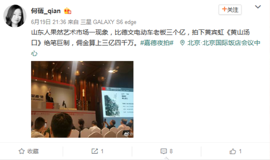 日前,微博网友爆料,3.45亿的黄宾虹竟然是山东雷丁新能源汽车集团买的!难道是大佬们抢破头了,竟杀出个程咬金么~