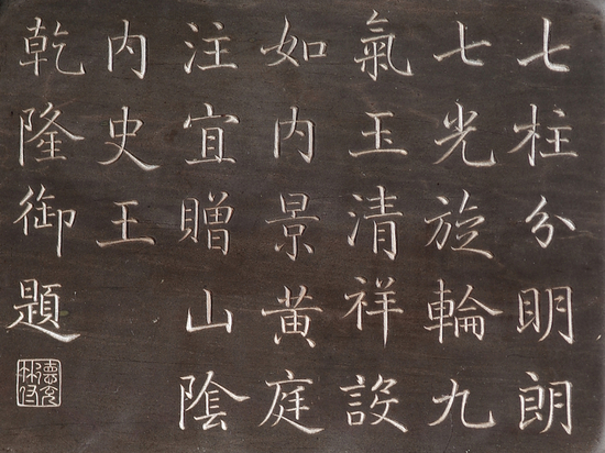 铭文:七柱分明朗七光,旋轮九气玉清祥。设如内景黄庭注,宜赠山阴内史王。乾隆御题。印文:德充符